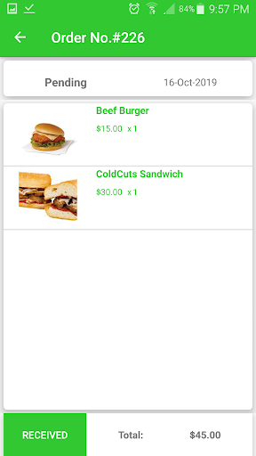 - Items (Beef Burger, Pinna, chicken, etc.)