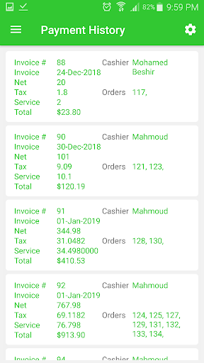 When pressing any table icon, the items, cart and payment will be available to your order taker.