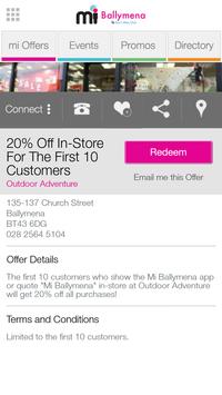 For all the latest exclusive offers, promotions and events from Ballymena businesses download the free mi ballymena app. It's packed with features to make finding and using the offers as easy as possible. Use the map powered search to locate events and offers nearby and share them with your friends via Facebook, Twitter and Email.