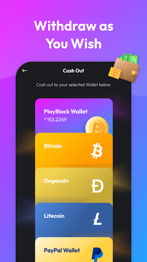 4. Once Players have won PlayBlock Network’s daily sweepstake prize pool, you can choose to convert your prize to mainstream cryptos like LTC, DOGE and BTC to your crypto wallet or convert to USD via Paypal and cash out immediately.