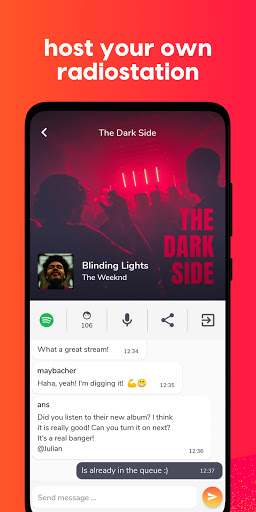 • React to the music that's playing, share your thoughts and exchange with other users.