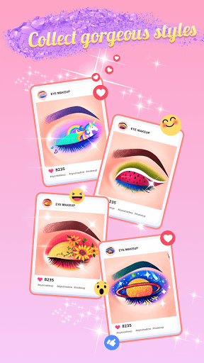 Every time you finish a gorgeous eye makeup, you will receive thousands of “Likes” from fans. And with your skill and influence accumulated, more creative Eye Art will be unlocked.