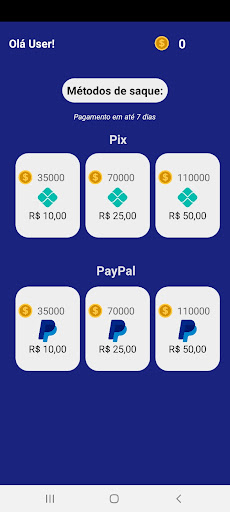 Money Pix points é um aplicativo gratuito (sem depósitos, sem compras no aplicativo)! ✔️ Fácil de usar! ✔️ Pagamentos rápidos e garantidos! ✔ Saques rápidos (transferência de dinheiro por Pix, PayPal , isenção de responsabilidade: 1-Este aplicativo não possui nenhuma ligação com nenhuma marca exposta, sendo feito exclusivamente para auxiliar os usuários. 2-Todos os direitos reservados às suas marcas, se a qualquer momento violarmos os direitos, avise-nos que iremos remover imediatamente. 3- nenhum anúncio está vinculado a qualquer marca neste aplicativo.