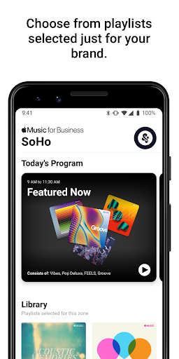 Apple Music for Business, brought to you by PlayNetwork, combines world-class music curation, proprietary technology, and easy-to-use tools to let customers listen to, share, and enjoy the music your brand plays—no matter where they go.