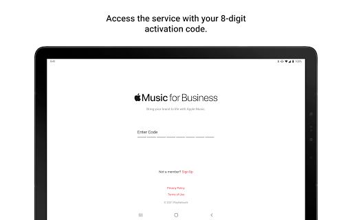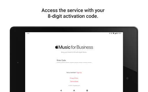 This app is only available to Apple Music for Business customers. To start using the service on your device, you must have a business subscription and an 8-digit activation code.