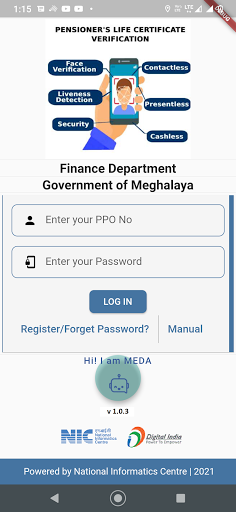 This app is meant for the Pensioners of Meghalaya to aid them in the process of submitting their Life Certificate required to avail pension benefits.