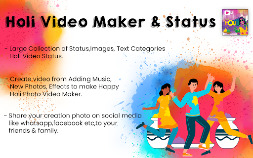 Holi Video Status & Video Maker 2021 App Features: