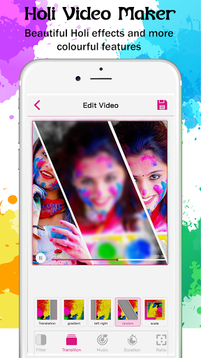 & Holi Photo Frames you feel the spirit of Holi whenever you want to remind yourself of happy holidays with create movie/video. Decorate your any number of photos and music to create any length of movies. Adding beautiful Holi or any other ornament.