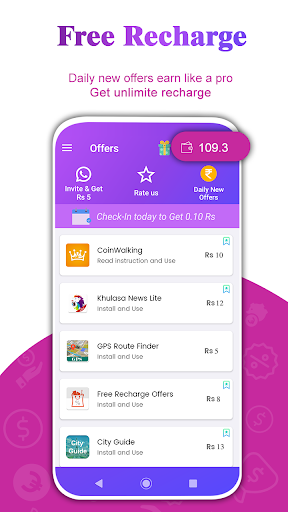 Free Recharge, Wallet Cash, Earn Talktime, Free Balance, Refer and Earn, Game Play and Earn