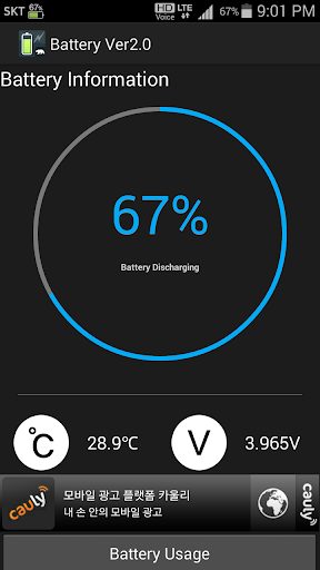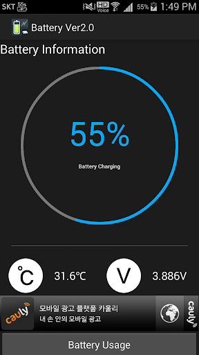 This app is battery status. How to information. Bateru shows the battery infomation, voltage and temperature to the user.(Status Bar and Activity of Android)