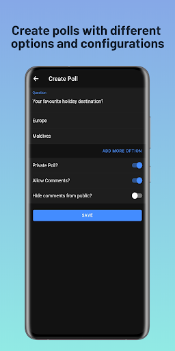 Online Polling app. Create private and public polls. Share polls to other apps.
