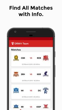 DRM11 Team is app that give teams of all cricket matches. App is provide daily update prediction team. Enjoy It.