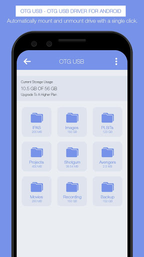 OTG USB File Explorer for android allows you to manage files from any USB mass storage device with a FAT32 or NTFS file system using the USB OTG port of your device, tablet or phone.