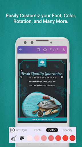 Poster Maker, flyer maker, graphic design is an easy to use app, just select the ready template, customize your text and business logo and share it. Or select background designs you like in your ratio & add your text with flyers design fonts, add amazing stickers, textart & shapes, add your pictures from gallery and create poster every time.
