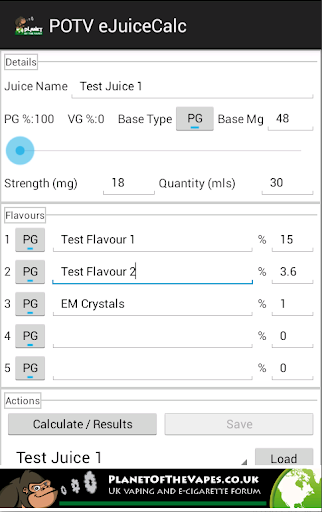 POTV EJuice ELiquid Calculator