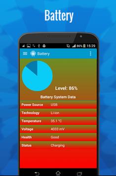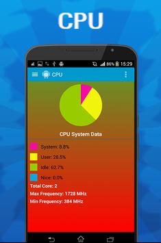 - To check the status (CPU, RAM, ROM, cards SD, Battery).
