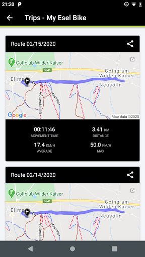 The trips your bike takes are automatically available in the My Esel App. You can manage them, share them on social media or export to a GPX file.