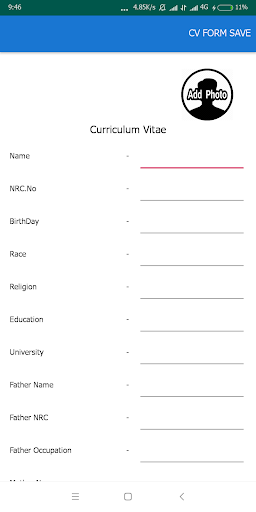 You can make your C V form easily by using this application .You can print out your CV form.Thank you ! our application using.