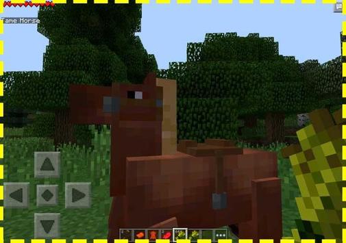 The Horses Mod for Minecraft Pocket (MCPE) implements random spawning horses in the world of Minecraft. You can ride a tamed horse and the riding will be an increased speed of normal walking.