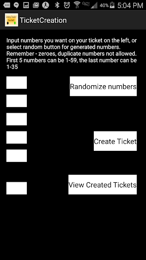 This is an unofficially created app to keep track of your Powerball tickets, viewing the current jackpot, past Powerball drawings, and etc. This was a classroom created app, with no affiliation to any lottery commission or business (I also do not profit from this app in any way).