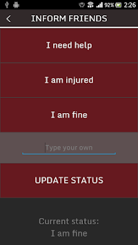 Smart ready-to-use one-button messages like “I’m OK”, “I’m injured”, “I need help”, “Connection lost”, “Phone is under limit of charging off” would simplify communication with family members and friends and let them know what is happening.