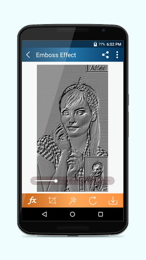 ▶ Emboss effect Editor app applies some magic effects on your photos to make it more beautiful and realistic.
