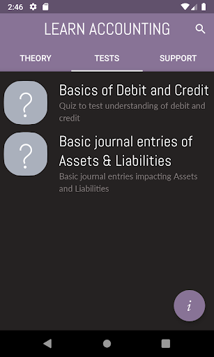 This application will help build and master your understanding of debit and credit in journal entries, basis for forming journal entries for different type of transactions.