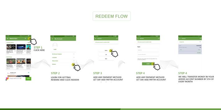 • A user can redeem the earn money, once the amount reached to 100INR in