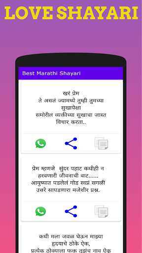 (Royal Marathi Shaayari Status) Best Marathi Shayari Statuse تم إعداده لجميع الإخوة والباتيز في ماهاراشترا. هذا (Royal Marathi Shaayari Stature) Best Marathi Shayari الحالة) أفضل تطبيق Marathi Shayari Statuse سوف يلبي جميع الدول التي تحتاجها دائما. / في هذا التطبيق -