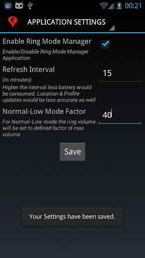 Ring Mode Manager makes your smartphone smart enough to switch ring modes(Silent,Vibrate & Normal) based on your location.