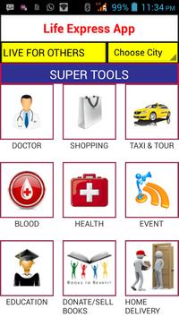 Features ----> CITY SELECTION ( ONLY ONCE) , PUBLIC COMPLAIN FORUM, BLOOD DONATION, ONLINE SHOPPING , HEALTH, EDUCATION, HOME DELIVERY, DONATE/SELL BOOKS , PROPERTY,