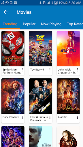 • Explore huge amount of categories: Popular, Now Playing, On TV, Upcoming, Trending, Top Rated