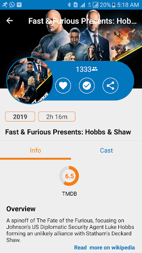 Muvi provides the best overview of Movies & TV shows from the biggest movie network The Movie Database (TMDB). You can browse all the movies and series through top lists to get the right information. Muvi gives you the easiest way to browse through your favorite movies or TV Shows to see if they are released or not.