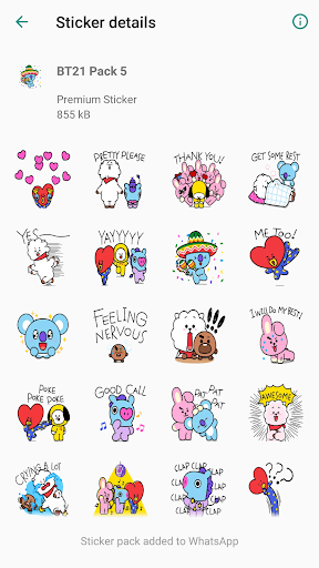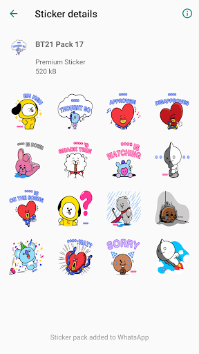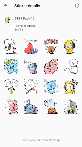 Download Sticker BT21 for WAStickerApps application and enjoy a variety of stickers available. Enjoy!
