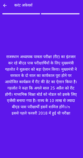 ढेर सारे REET सम्बंधित टेस्ट्स, जिन्हे आप कभी भी अपनी सुविधा के हिसाब से दे सकते है और अपनी REET की तैयारी का आंकलन कर सकते है। प्रतिदिन पाए करंट अफेयर्स की जानकारी ऍप के अंदर ही , संक्षिप्त स्टोरीज के रूप में। परखे अपनी REET की तैयारी को हज़ारों अपने ही जैसे अभियर्थियों के साथ।