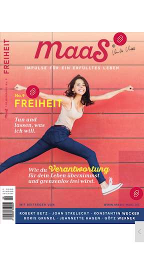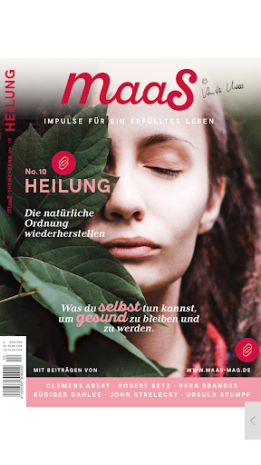 maaS ist ein mindstyle Magazin mit Impulsen für ein erfülltes Leben, das in jeder Ausgabe ein Thema aus dem Bereich der persönlichen Weiterentwicklung aufgreift und es von allen Seiten beleuchtet. Mit Beiträgen verschiedener Autoren wird ein breites Spektrum von Aspekten zu einem Thema abgedeckt, so dass man sich ganz in ein Thema vertieft und neue Erkenntnissen für das eigene Leben gewinnt. Die zeitlosen Themenmagazine sind inhaltlich so wertvoll wie ein Buch und so ansprechend gestaltet wie ein Magazin. Besonders wertvoll macht es die Zusammenstellung der Beiträge. Die Herausgeberin Anita Maas möchte mit dem Magazin Menschen berühren und auf dem Weg zu einem erfüllten Leben inspirieren.