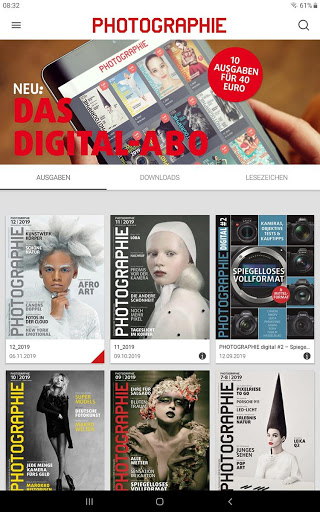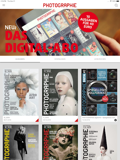 Photographie Magazin, die interaktive Ausgabe der Zeitschrift PHOTOGRAPHIE. Beste Bilder und wie man sie macht, hochkarätige Portfolios prominenter Fotokünstler und aufstrebender Nachwuchstalente, aussagekräftige Produkttests ohne Kurvendiskussionen. In der Photographie-App können Sie unsere Testbilder vergrößern, finden zahlreiche Links und interaktive Angebote und noch mehr Bilder.