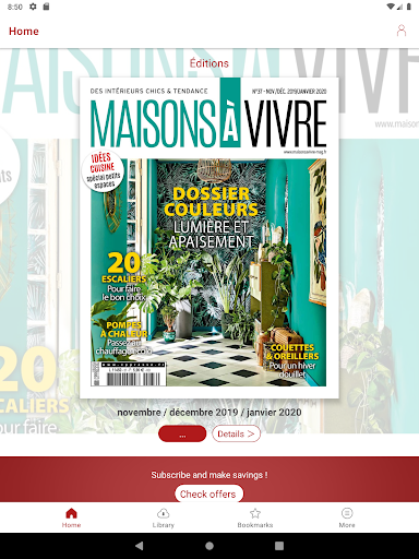 Maisons à Vivre sur votre tablette ou smartphone : une nouvelle expérience de lecture avec des interactivités (sommaire dynamique, liens internet...).