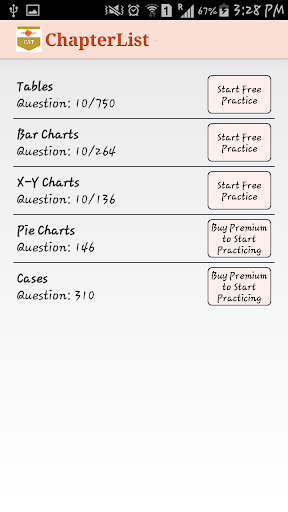 In MBA - CAT, XAT, NMAT, CET App's FREE version you would get 3 tests free in "Take a Test" and few free questions for 3 Chapters for each subject in "Practice Qs". The premium App costs Rs.900. In Premium App you will receive unlimited "Take a Test" as well practice through complete question bank using "Practice Qs"