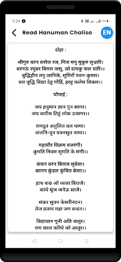 The app contains more than 20 best collection of Hanuman chalisa with beautiful Images, which changes itself when hanuman chalisa Audio is playing in the app