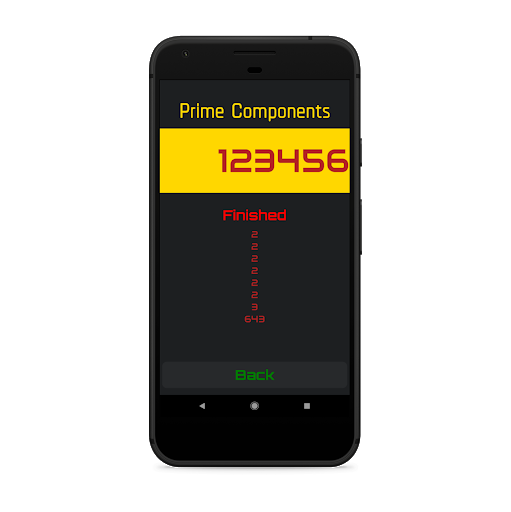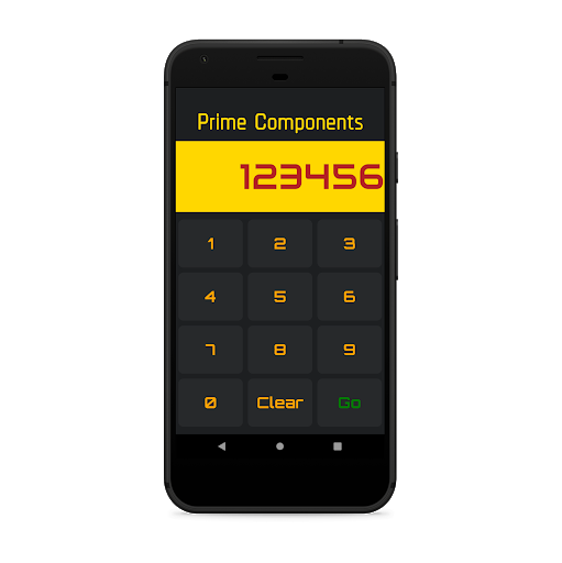Show the prime factorization of a number. Has a large keypad to make entering easier and a retro 80s interface.