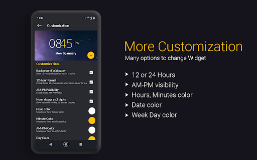 ✔️Select your preferred colors for date and time