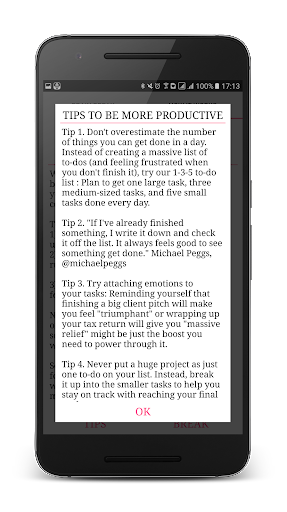 This app was designed to help you be more productive and time-efficient at whatever you do. Know when your body and mind needs to take a break and get back to work.