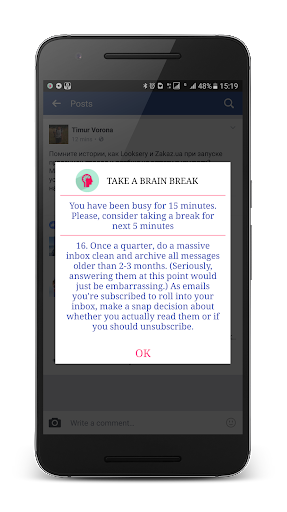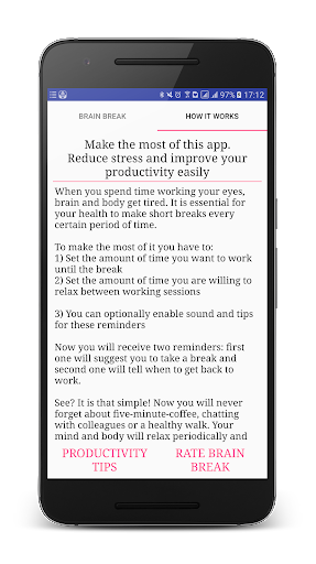 Now you will receive two reminders: first one will suggest you to take a break and second one will tell when to get back to work.