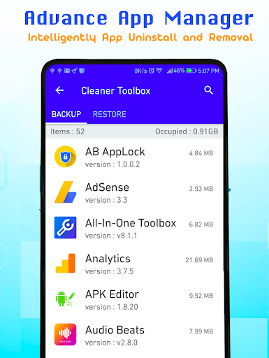 "Clean Toolbox" is the smallest phone cleaner, memory booster, game booster, junk file cleaner, trash cleaner, memory booster, battery optimizer and app manager for your Android phones or tablet. The Fastest clean booster