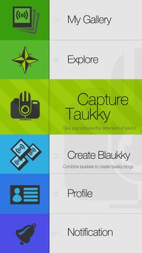 - Click on "Capture Taukky" to take picture and then record your sound. Use different filters and add your own caption.