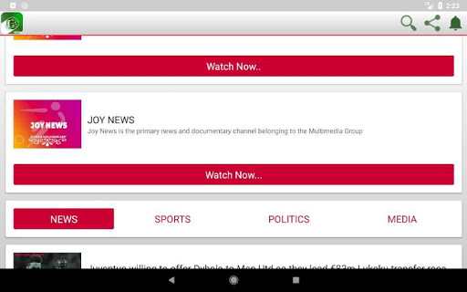 Content include Sports, Political, Entertainment News from Ghana and the globe. Channels included here are categorised under sports, politics and movies.