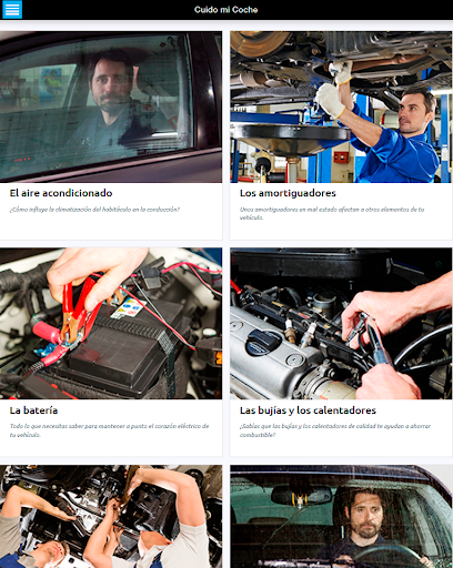 > Consejos prácticos para ahorrar y prolongar la vida de tu vehículo a través de vídeos breves y didácticos sobre: el aire acondicionado, los amortiguadores, la batería, las bujías y los calentadores, la dirección, las escobillas, los filtros de habitáculo y de motor, el freno de disco y de tambor, la gestión del motor, la iluminación, el kit de distribución y los rodamientos de rueda.