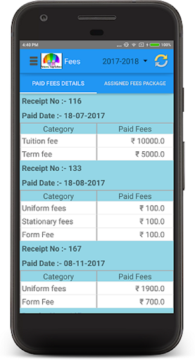Complete Fee details of a student is available to parents directly on their smartphone. Details of paid fees and pending fees makes job of parents and school easy.