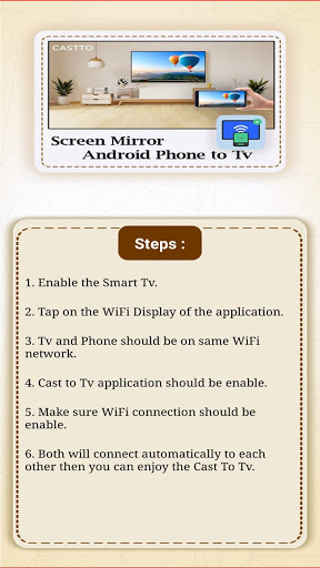 Firstly, App open then click on wi-fi display you will go on cast screen directly.